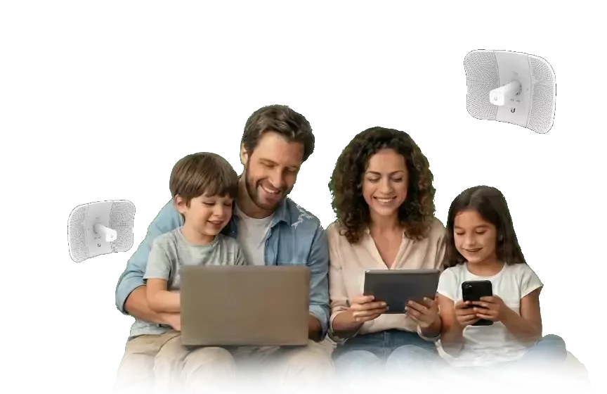 Es un servicio de conectividad que llega a tu hogar a través de ondas de radio (enlaces por aire), eliminando la necesidad de cableado en la calle. A diferencia de la conexión tradicional por cable o fibra, el internet inalámbrico se recibe mediante una pequeña antena en tu techo que se conecta a nuestras torres, permitiéndote tener internet de alta velocidad incluso en zonas donde no existen redes cableadas.